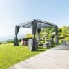 Une tonnelle à lames doubles orientable mais surtout étanche une fois fermée !